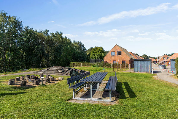 Alle rækkehusene i stueplan har have og der er 10 carporte i afdelingen, hvoraf nogle hører til rækkehusene og andre udlejes af afdelingens varmemester.